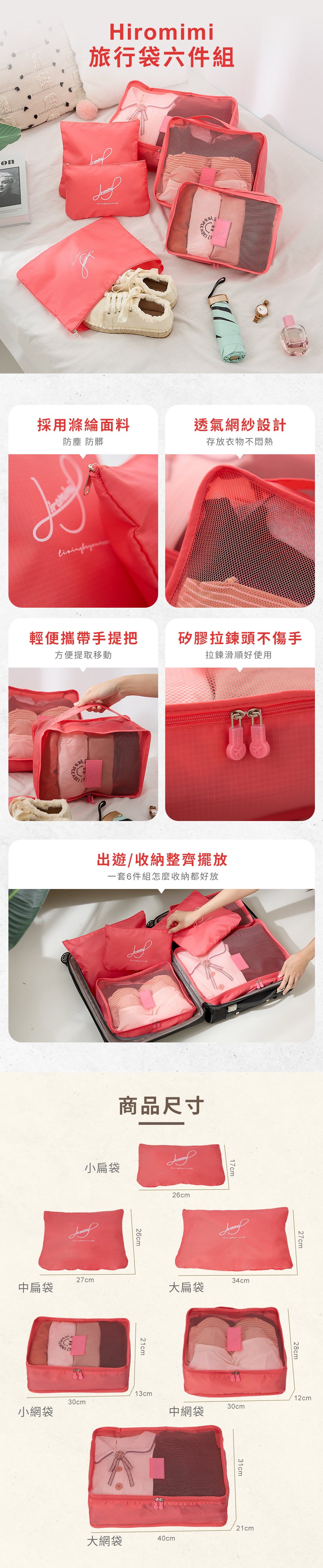 規格尺寸: 小扁袋26x17cm;忠扁袋27x26cm;大扁袋34x27cm;小網袋30x21x13cm;中網袋30x28x12cm;大網袋40x31x21cm